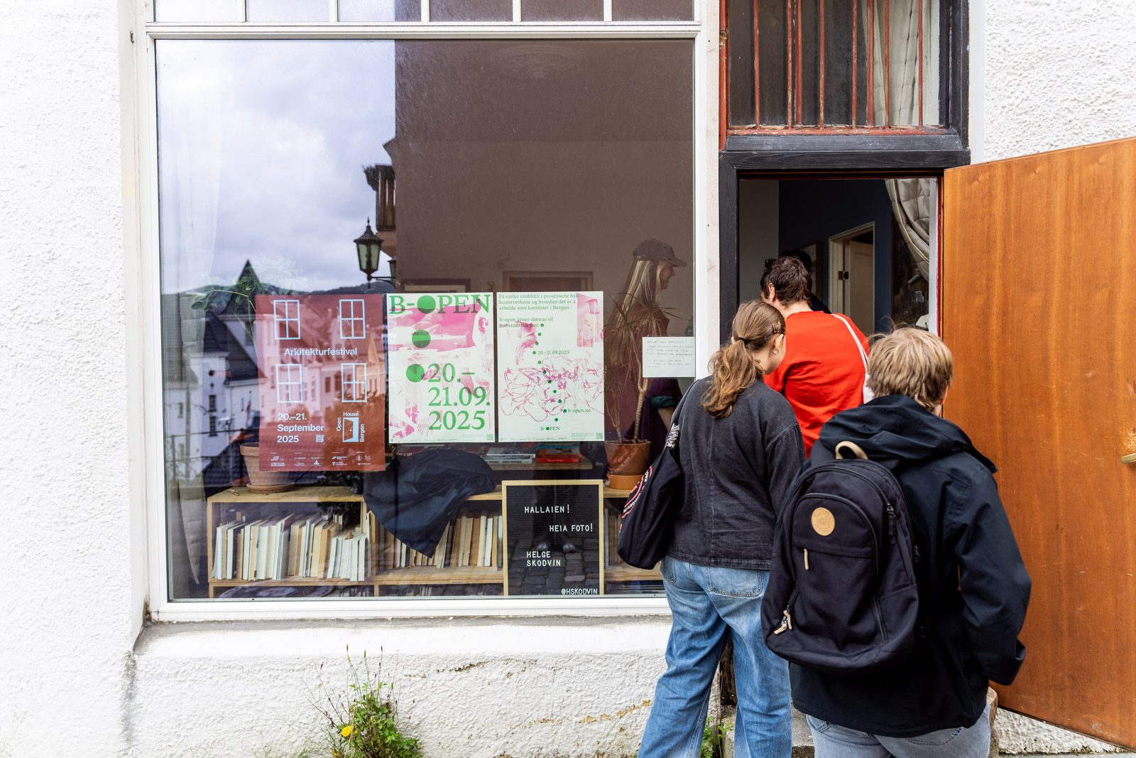 Fra guidet tur til atelier i sentrum lørdag 20.september 2025. Her på vei inn til fotograf Helge Skodvin. Foto: Synne Sofi Bårdsdatter Bønes