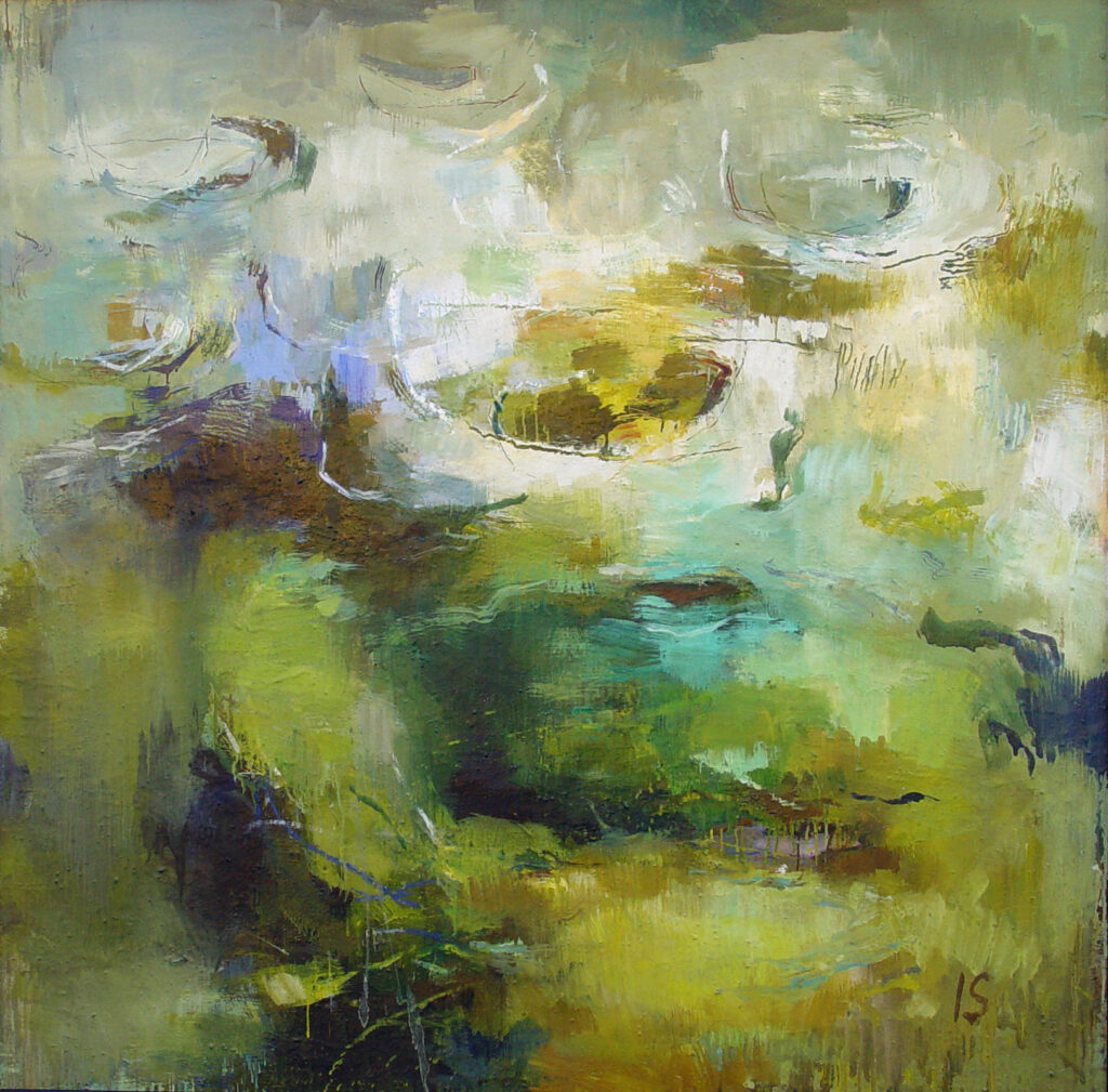 Arbeider med ulike tilnærminger til måleriet, bildet kan utvikle seg autonomt der eg går i dialog med flaten. Eller det kan vera kontrollert og styrt, gjerne med utgangspunkt i foto, der eg leiter fram visuelle område som elles er skjulte.